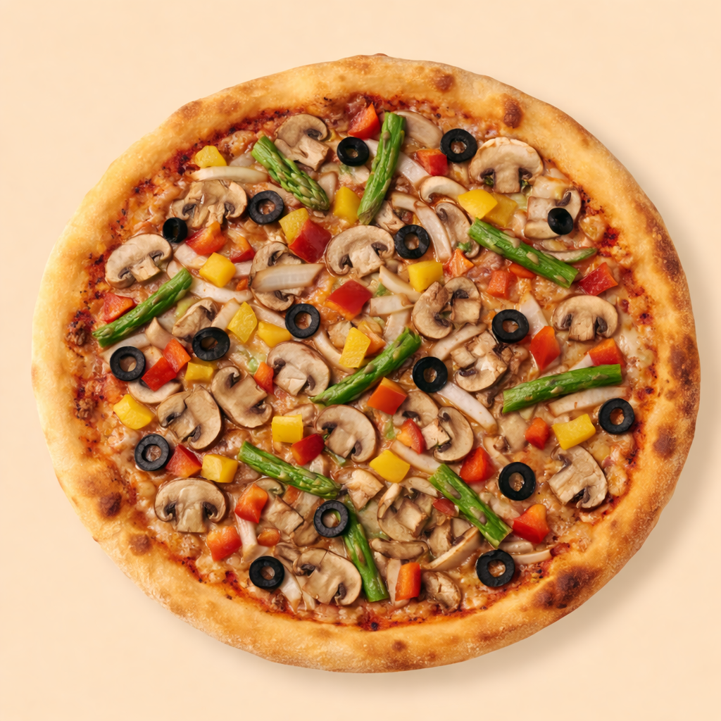 Herkkusieni, paprika, sipuli, parsa, oliivi